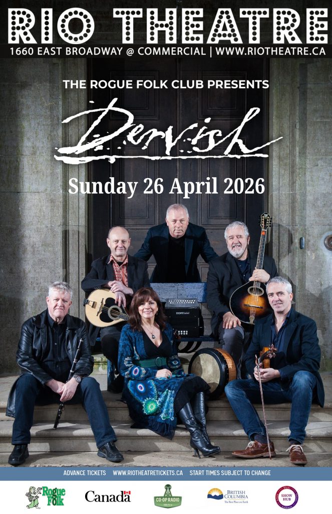 Rogue Folk Club presents Dervish Music from the West of Ireland with passionate vocals and dazzling instrumentals. Dervish have been bringing Irish traditional music to the world for more than 30 years, and received the prestigious BBC Radio 2 Lifetime Achievement Award. Described by the BBC as