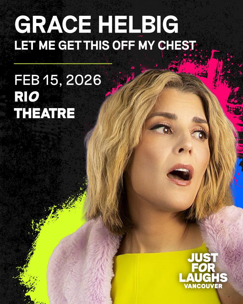 Just For Laughs Vancouver Presents Grace Helbig: Let Me Get This Off My Chest Sunday, February 15 Doors 6:00 pm | Show 7:00 pm *Start time subject to change. Please arrive on time. Tickets HERE At 37 years old Grace Helbig was diagnosed with