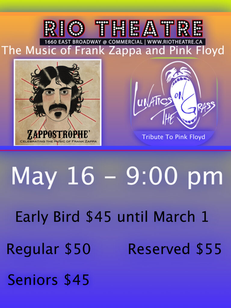 Frank Zappa’s music – reimagined! Zappostrophe’…dares to take on Zappa’s weird and wonderful world – recreating his tunes with jaw-dropping musicianship, and a wink to his irreverent humour (CHEK TV, Victoria, 2024) Zappostrophe’ is a Vancouver-based 8-piece band, playing favourites and lesser-known works from Frank Zappa’s eclectic recordings. Our shows include
