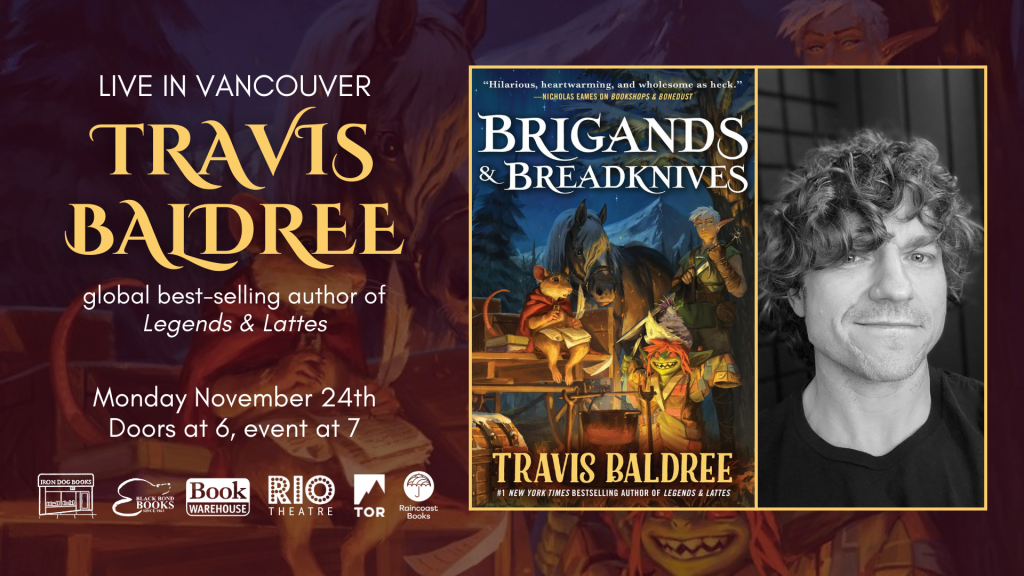 Ticket price includes a signed paperback copy of ‘Brigands & Breadknives,’ with an additional opportunity to meet Travis Baldree and get a personalized signature after the event.