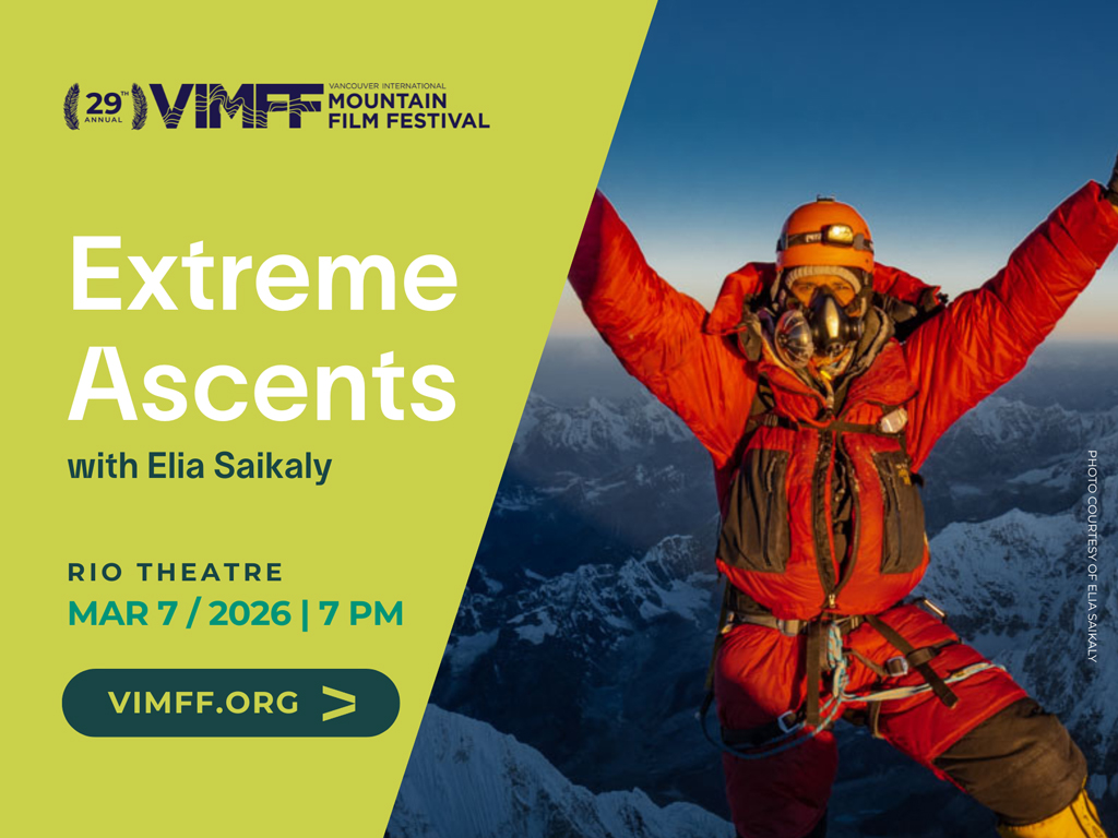 The Vancouver International Mountain Film Festival (VIMFF) returns to the Rio Theatre in March for a curated selection of must-see adventure films featuring a lineup of adventure-inspiring, thought-provoking films. Watch stories of identities being carved out on the slopes, breathtaking mountain-sport achievements, and learn more about the wild spaces we’re so lucky to live and work within.