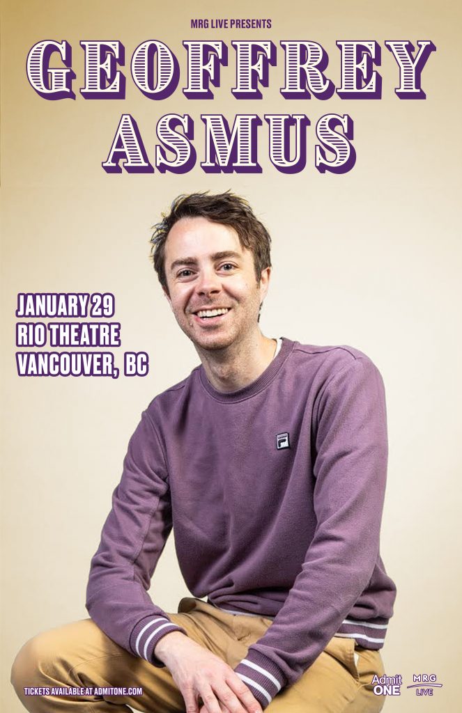 MRG Live presents GEOFFREY ASMUS Comedian Geoffrey Asmus began performing stand-up in 2013 immediately after wasting $143,548 on seven college degrees and becoming a 1st grade teacher. He regularly performs at the World Famous Comedy Cellar in New York City and was featured at Just For Laughs in
