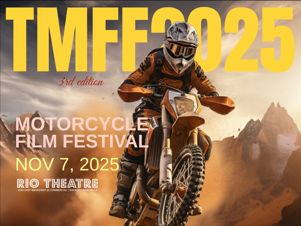 The 3rd annual TMFF roars back to Rio Theatre for one night only with the newest and best motorcycle films from around the world. Start the night full throttle by kicking up some dust in the sand dunes before heading to the mountains. One night only. Global cinema, unforgettable journeys, and motorcycles as you’ve never seen them before. Presented in conjunction with Rio Theatre.