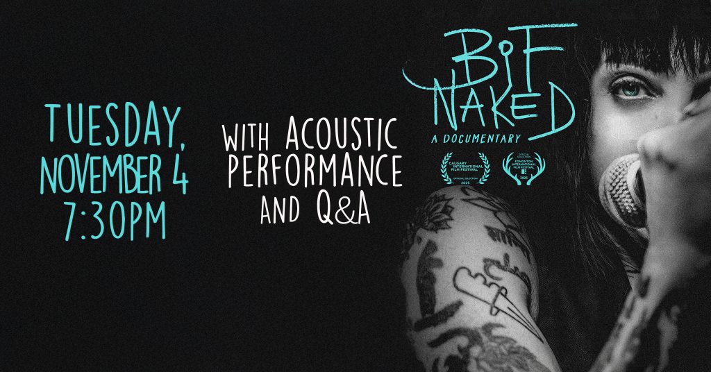 Born in secret in India, adopted by American missionaries, and raised in Canada, Bif’s journey has been anything but typical. She found her voice in the underground punk scene of the late ‘80s and early ‘90s, quickly rising to prominence with her raw, emotionally charged lyrics and undeniable stage presence. As she ascended to rock stardom, she became a symbol of empowerment, a beacon for misfits, and an outspoken advocate for causes close to her heart. But her story isn’t just about fame. It’s about survival. Bif has faced and overcome extraordinary challenges—cancer, addiction, sexual assault, and a brutal music industry that often sought to silence her. Yet, through it all, she remained unbreakable, turning her pain into poetry and her struggles into anthems. Told through exclusive interviews, rare archival footage, and anthemic performances, BIF NAKED is a deep dive into the life of a woman who has lived and loved fearlessly. It’s about the cost of authenticity, the power of perseverance, and the undeniable impact of an artist who continues to define and redefine herself. With Bif Naked, George Stroumboulopoulos, Doug Fury, Chiko Misomali, Peter Karroll.