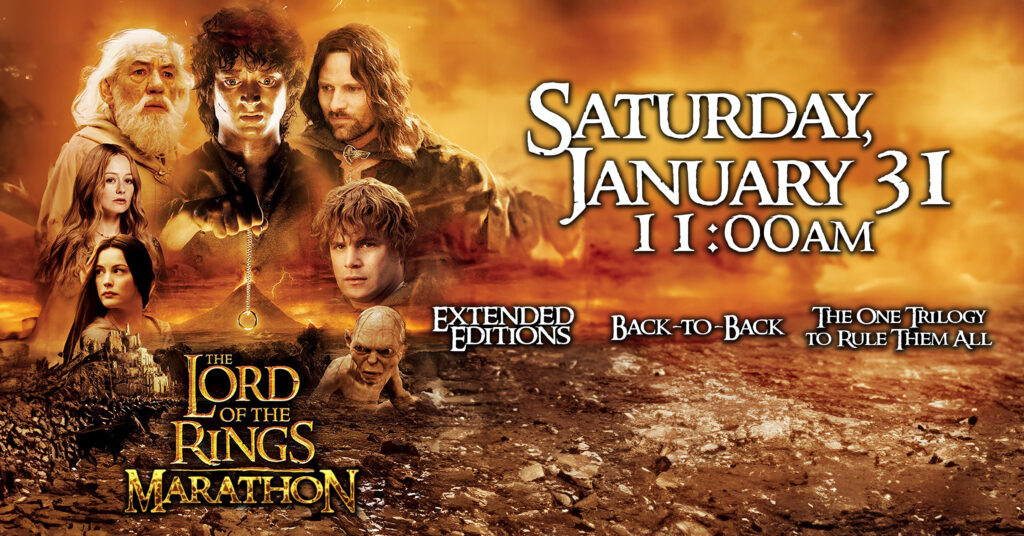 Join us at the Rio Theatre on Saturday, January 31 – for a daylong movie marathon event featuring Peter Jackson‘s LORD OF THE RINGS Trilogy (Extended Edition!) – back-to-back, on the big screen, and in its entirety. Based on the high-fantasy epic novel by English author J.R.R. Tolkien, Jackson’s trilogy represents a monumental achievement in modern filmmaking that has been embraced by fans around the world.