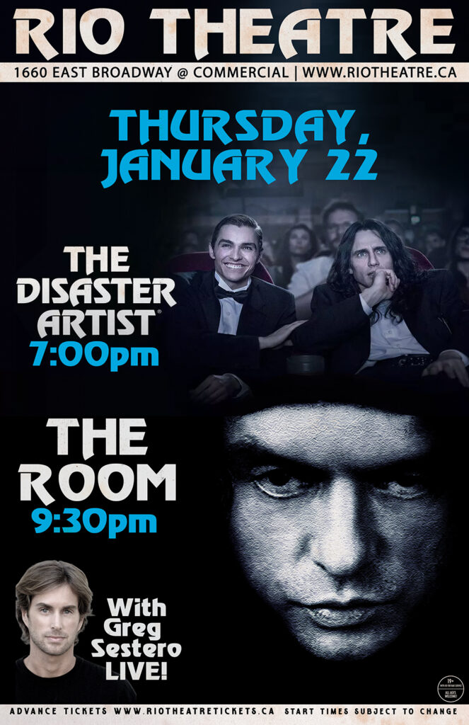 “Oh, hai Mark!” Join us at the Rio Theatre on Thursday, January 22 with host Greg Sestero – star of the pop-culture phenomenon THE ROOM, and author of the best-selling memoir “The Disaster Artist: My Life Inside The Room, the Greatest Bad Movie Ever